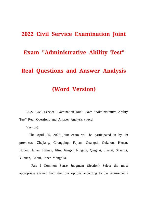 2022年公务员考试联考行测真题及答案解析word版