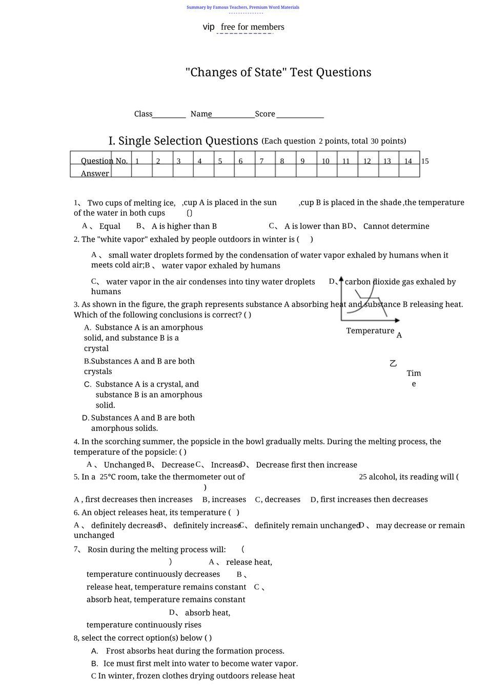 Test questions on changes of state