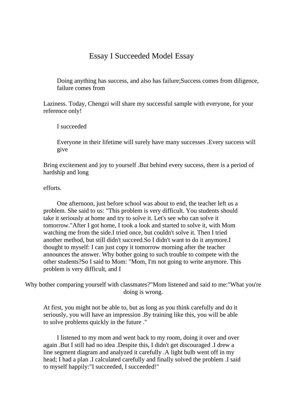 Essay I Succeeded Model Essay