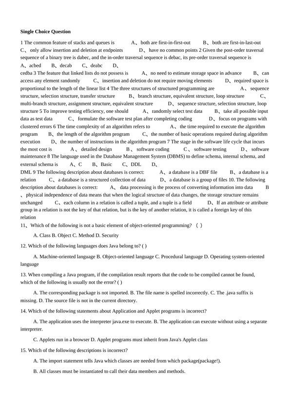 JAVA考试题含选择填空程序
