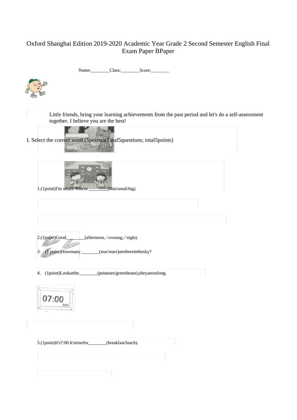 牛津上海版20192020学年二年级下学期英语期末考试试卷B卷
