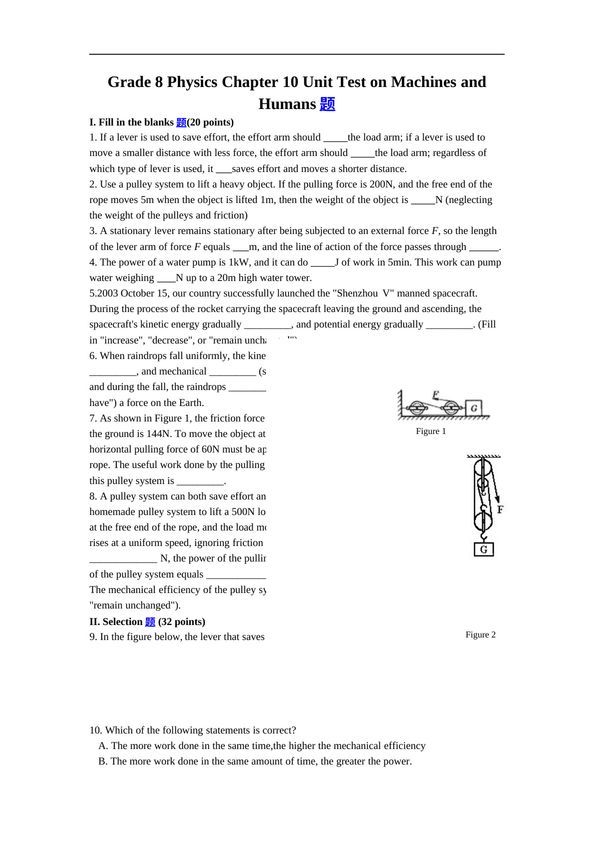 2016八年级物理(沪教版下册)教案:第十章《机械与人》word练习题2
