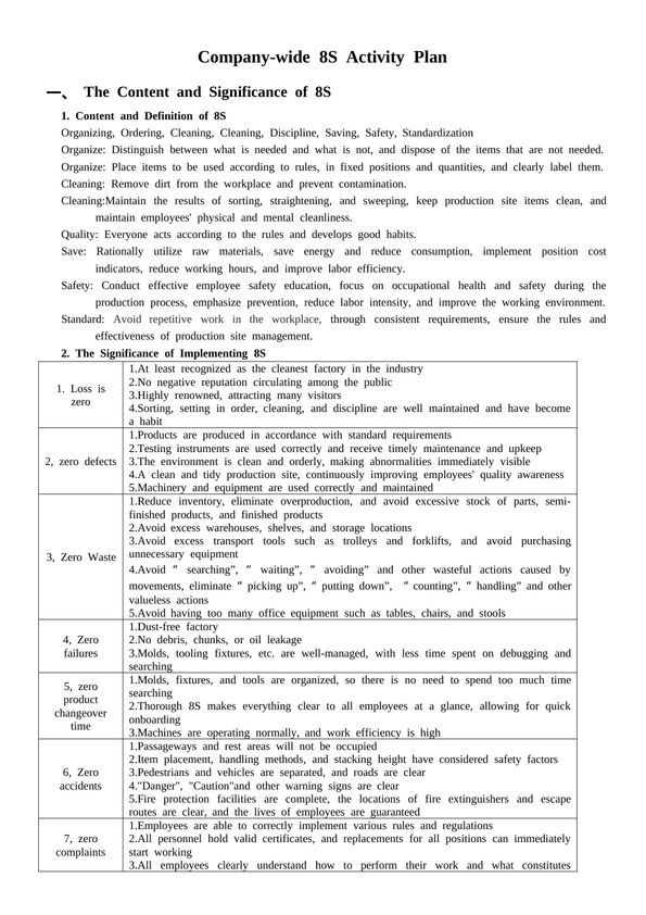 全公司8S活动方案,8S的内容、活动实施、检讨及改善过程