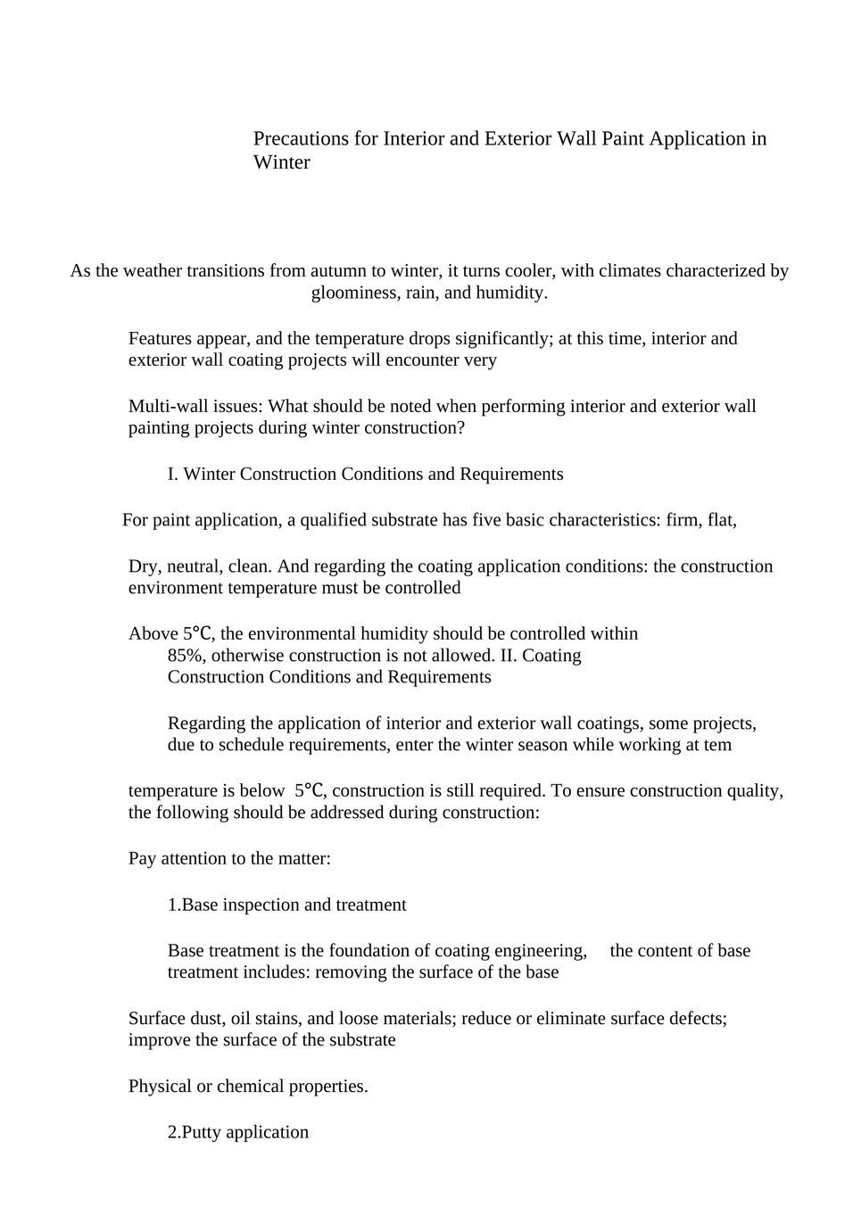 Precautions for Interior and Exterior Wall Paint Construction in Winter